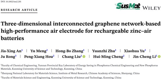 上述研究以“Three-Dimensional Interconnected Graphene Network-Based High-Performance Air Electrode for Rechargeable Zinc-Air Batteries”为题,发表在SusMat(IF=28.4)上。论文的第一作者为糖心vlog