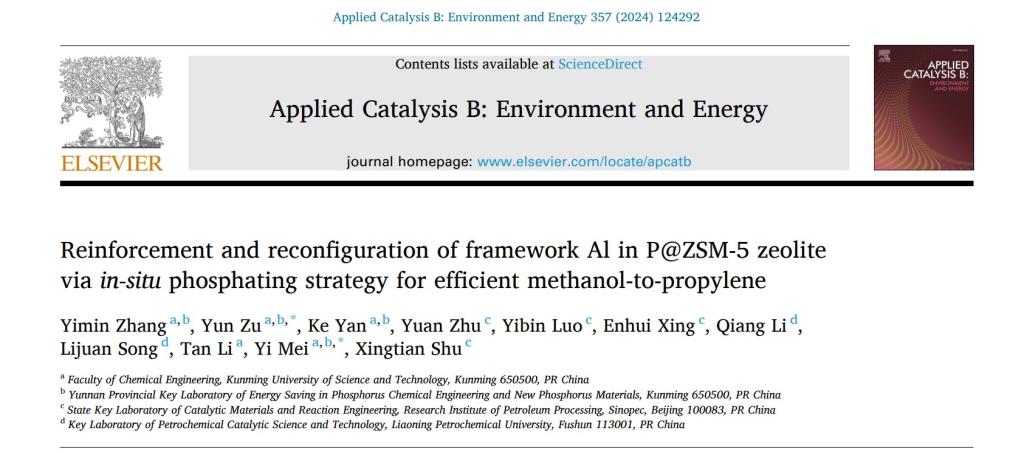 磷化工团队联合中石化北京石油化工科学研究院舒兴田院士团队围绕含磷分子筛催化剂设计的最新研究成果“Reinforcement and reconfiguration of framework Al in P@ZSM-5 zeolite via in-situ phosphating strategy for efficient methanol-to-propylene”在环境和能源催化领域著名学术期刊Applied Catalysis B: Environment and Energy(IF=22.1)发表。糖心vlog
