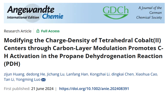 罗永明教授、何德东教授在丙烷脱氢制丙烯研究方面取得重要进展,相关成果以“Modifying the Charge-Density of Tetrahedral Cobalt(II) Centers through Carbon-Layer Modulation Promotes C-H Activation in the Propane Dehydrogenation Reaction (PDH)”为题,发表在国际化学顶级期刊《Angewandte Chemie International Edition》上。何德东教授和罗永明教授为论文共同通讯作者。
