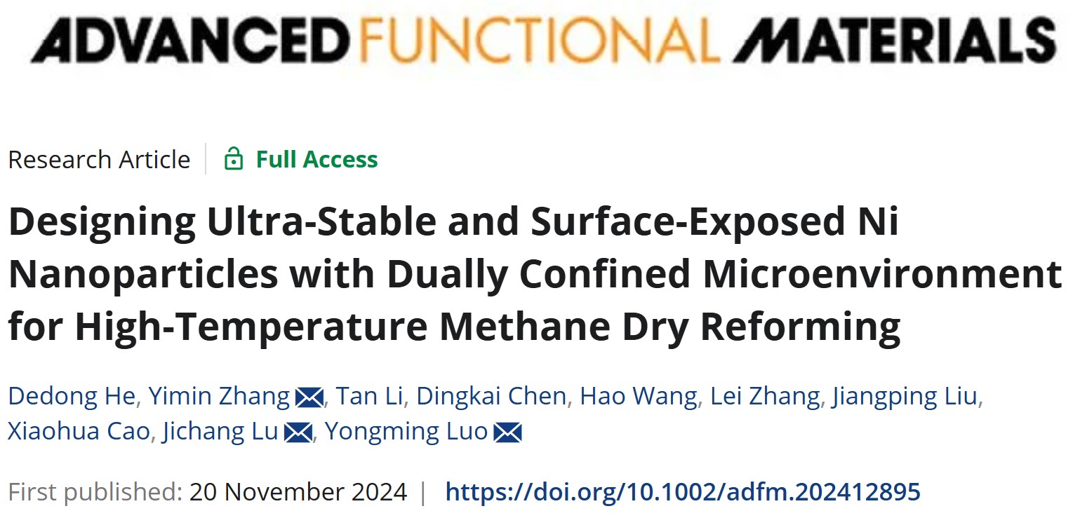 先进环境功能材料创新团队围绕温室气体资源化转化研究方面取得重要进展,相关成果以“Designing Ultra-Stable and Surface-Exposed Ni Nanoparticles with Dually Confined Microenvironment for High-Temperature Methane Dry Reforming”为题,发表在材料领域国际著名期刊《Advanced Functional Materials》上。何德东教授为论文第一作者,罗永明教授为论文通讯作者,糖心vlog