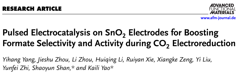 林资源高效转化与利用创新团队在二氧化碳还原(CO2RR)催化剂研究领域取得重要进展,相关成果以“Pulsed Electrocatalysis on SnO2 Electrodes for Boosting Formate Selectivity and Activity during CO2 Electroreduction”为题发表在材料科学领域顶级期刊《Advanced Functional Materials》(IF=19.0)上。糖心vlog