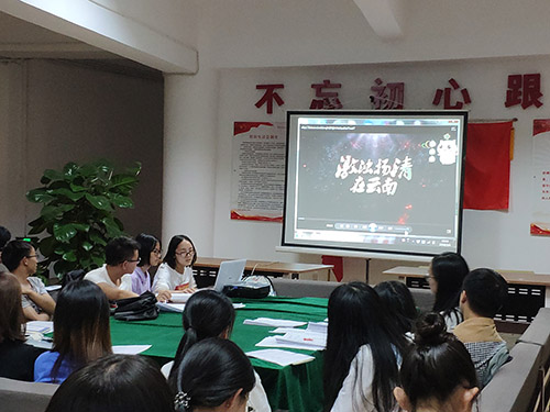 2019年5月17日晚20:00,化工学院第一党支部全体成员在化工楼三楼党建活动室集中观看视频《激浊扬清在云南》第一集《亮剑惩腐》。