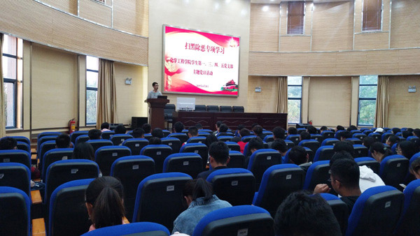 学生党支部于2019年4月8日19:00在化工楼100报告厅开展了“扫黑除恶专项学习”主题党日活动,学院学生第一党支部、学生第三党支部、学生第四党支部、学生第五党支部成员参加,活动由学生第三党支部组织委员左虎同志主持。