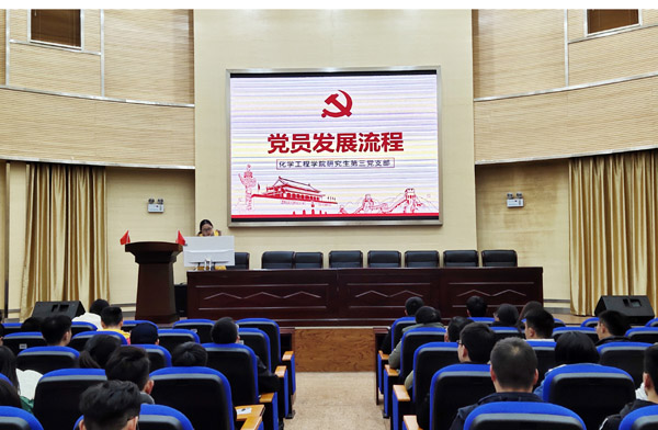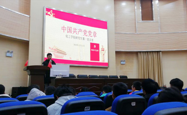 研究生第一、二、三党支部在化工楼100报告厅开展入党申请人和积极分子培训。研究生第一党支部书记韩涛、研究生第二党支部书记母维宏、研究生第三党支部书记江梦、各支部入党申请人和入党积极分子参加了培训。培训由研究生第三党支部书记江梦主持。