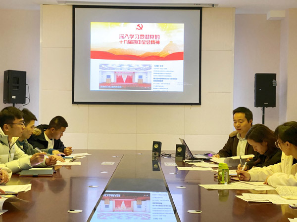 学生第三党支部于12月13日在化工楼开展“学习党的十九届四中全会精神”活动,学习活动由党支部书记袁敬老师主持,支部35名党员参与了学习。