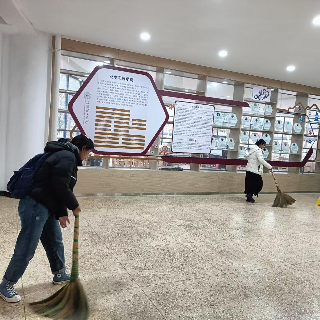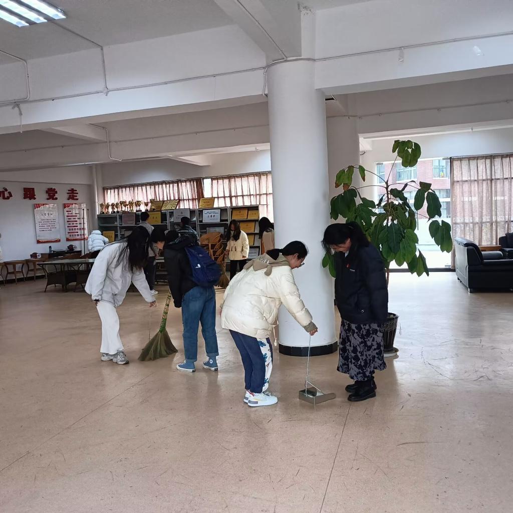 会后,学生第四党支部党员,开学学雷锋实践活动,党员同志共同打扫化工楼楼梯、大厅、并整理桌椅。