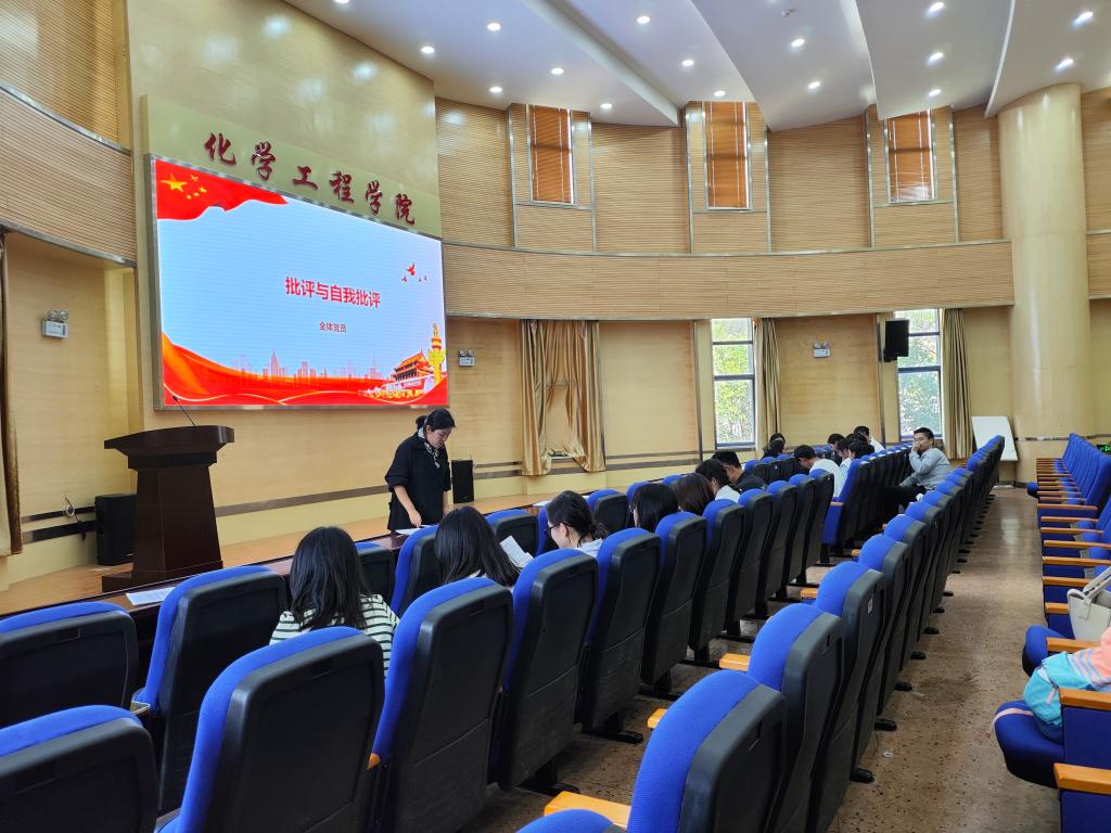2023年3月23日下午14:50时,学生第二党支部在化工楼100报告厅开展了2022年度党支部组织生活会和民主评议党员工作。本次会议由党支部书记李凯宇同志主持,学院党委委员、副书记宁玲同志出席了本次会议。
