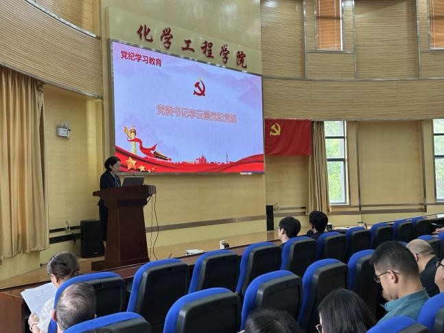 党委在化工楼100报告厅召开党员大会,学院党委书记李云燕、副院长彭林才、副院长朱远蹠出席大会。党委副书记、纪委书记宁玲主持大会。