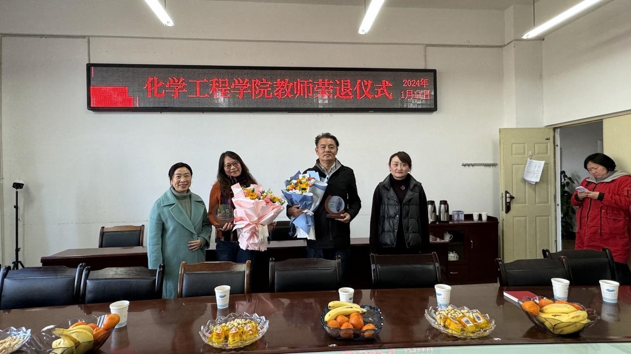 为感谢退休教师多年来的辛勤付出,增强退休的荣誉感、仪式感和归属感,2024年1月11日下午,糖心vlog 为顾丽莉和唐辉两位老师举办了荣退仪式。院党委书记李云燕、副书记宁玲、各科室代表、化工系教师代表参加了本次活动,荣退仪式由工会主席常静华主持。