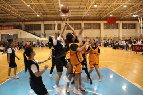 男篮、女篮斗志昂扬,意气风发,同学们纷纷来到赛场上为参赛队员们加油助威。