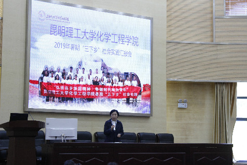 此次赴屏边开展暑期“三下乡”社会实践的基本情况。谢丽芬老师从“弘扬”“苗乡”“青年”三个方面介绍了此次“三下乡”社会实践总项目的具体情况并通过观看屏边宣传片“一步之遥”带领大家领略了屏边风情,接着,“三下乡”社会实践子项目小组就自己的课题进行分享。