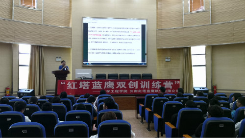 “红塔蓝鹰双创训练营”第二期专题培训在化工楼100报告厅如期举行。本次活动由校团委马宝老师主讲,化工院17级双创训练营成员参加,由创新创业部黄泽同学主持。