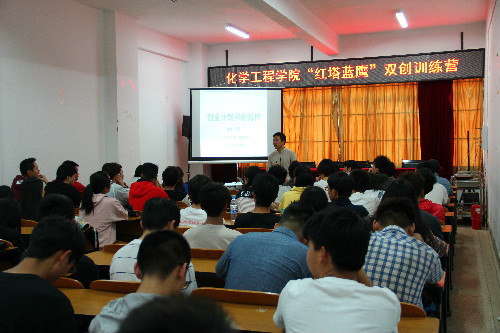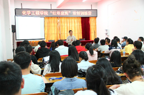 “红塔蓝鹰双创训练营”第四期专题培训在化工楼负一楼报告厅如期举行。本次活动由学院袁敬老师主讲,化工院17级双创训练营成员参加,由创新创业部朱丽颓同学主持。