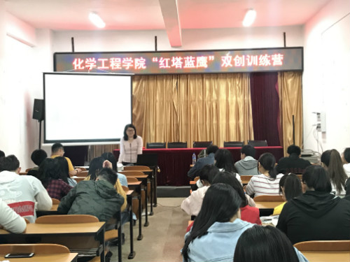 “红塔蓝鹰双创训练营”第七期专题培训在化工楼负一楼报告厅如期举行。本次活动由学院谭宏雪老师主讲,化工院17级双创训练营成员参加,由王学平同学主持。