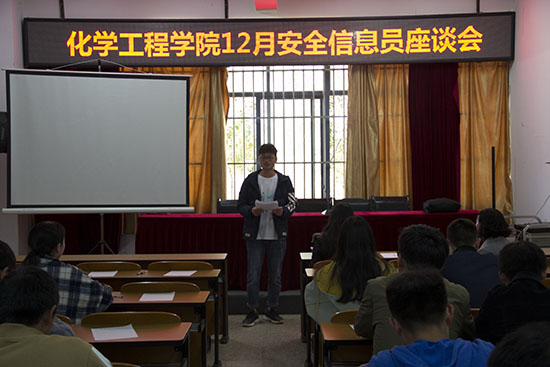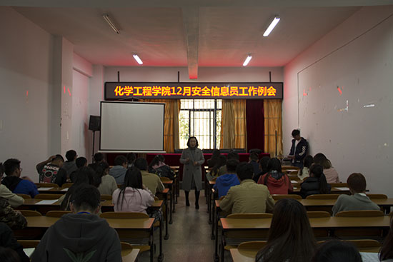 12月安全信息员例会顺利开展,出席本次会议的有院党委副书记李云燕老师,勤助会指导老师杨欢老师,学院各班安全信息员以及勤助会权益部工作人员。李佳建同学担任本次例会主持人
