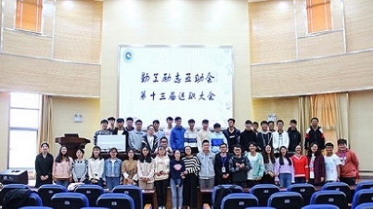 第十三届勤工励志互助会述职大会在化工100报告厅召开。勤助会指导老师杨欢老师及勤助会全体成员出席本次大会。会议由勤助会办公室副主任苗钰函主持。