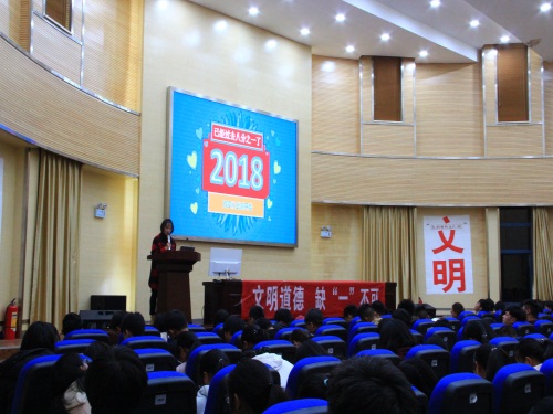 在化工楼100报告厅组织开展了2018级新生“讲文明,树新风”主题活动,2018级辅导员罗晓菲老师出席本次活动,2018级全体学生参加了本次活动。