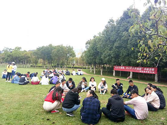 学生党员服务队于捞鱼河空地举办了“花好月圆夜,化工学子共相聚”中秋活动,2018级辅导员,2018级在校同学和党员服务队全体队员相聚一起,共度中秋。