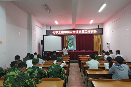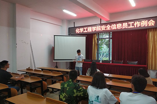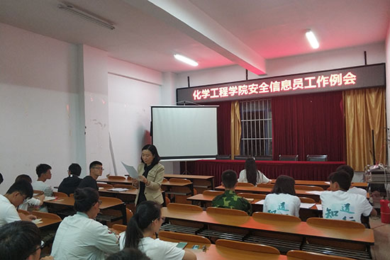 班级安全信息员工作会议在化工楼负一楼报告厅顺利召开。化工院党委副书记李云燕、勤工励志互助会指导老师杨欢、勤工权益部所有成员以及化工院各年级的安全信息员一同参与了本次会议。
