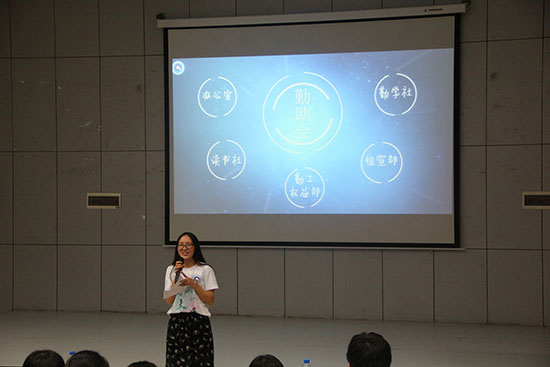 大会由勤助会会长胡轶男主持。大会伊始,主持人表达了对18级新生的期待,同时对所有到场人员表示热烈欢迎。
