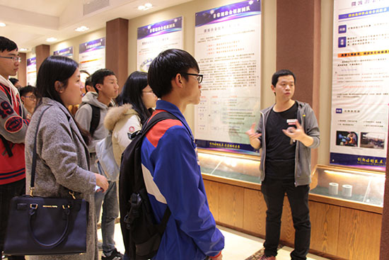 参观完博物馆,同学们来到了第二站,彭金辉校长的实验室。彭校课题组林博士先带同学们参观了非常规冶金重点实验室展览厅,室内的陈列详细的介绍了彭校的光辉事迹及他的各项研究项目。耳闻不如一见,紧接着,林博士带大家走进实验室,着重为大家介绍了微波冶金装置,并一一讲述各个装置的原理及用途。同学们被国家先进技术和设备折服的同时,也暗暗下定决心好好学习专业知识,将来也为国家奉献自己的力量。