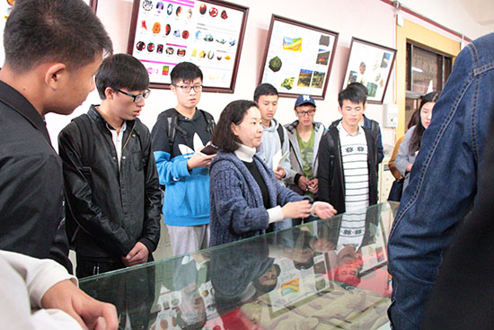第一站是地学博物馆,在国资院王老师的带领下,同学们先后参观了岩矿展厅和古生物展厅,期间,奇特美丽的矿石和气势磅礴的恐龙化石深深吸引着同学们,王老师详细介绍了展厅的陈列品,为同学们上了一节生动有趣的地学课。同学们在不禁感叹大自然的鬼斧神工同时,也对知识的浩瀚表达着渴望与崇敬。
