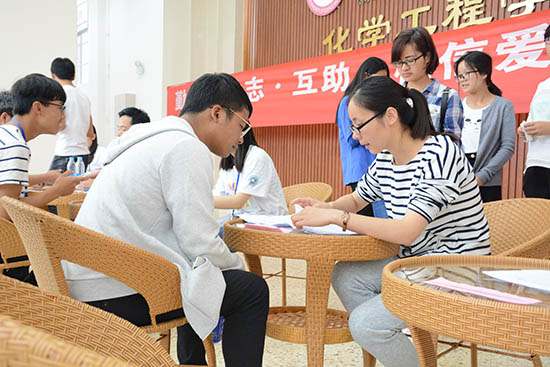 勤工励志互助会承办的首届院内勤工助学双选会在化工楼门厅举行,近百名经济困难学生参与现场面试。袁敬老师、王春丽老师、李凯宇老师亲临面试现场。