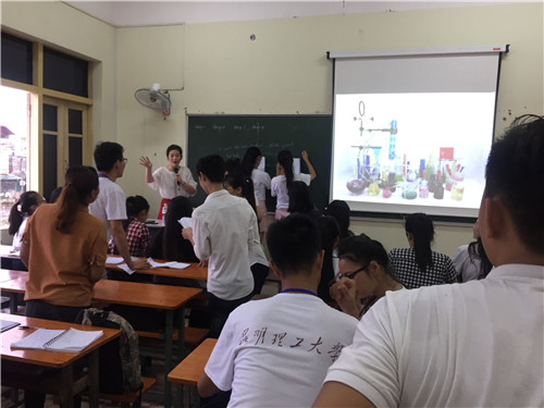 基本情况进行了相关介绍,双方就未来可能合作的形式进行了初步的探讨。此后,对方学校老师针对双边教学形式和学生学习方法、学习习惯、学习效果等进行提问,参会老师和学生进行了较为深层次的交流和反馈。最后何老师介绍了她个人的科研情况,并做了关于高分子聚合物微球的制备及运用的学术报告,并就报告内容与师生进行了深层次的学术交流。