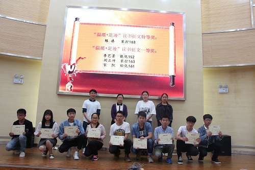 进入颁奖环节,老师们依次为征文比赛获奖同学、书法大赛硬笔软笔获奖同学以及读书接力活动优秀志愿者进行颁奖,并合影留念。最后,党委副书记李云燕老师进行总结,她对今年的读书节系列活动表示了肯定并根据亚马逊的数据,分析了大众读书的偏好,并由此提醒同学们畅销书未必适合所有人,我们要学会甄别图书,多读经典,重在实践。