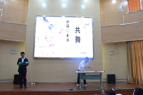 接下来的“诗歌书法共舞环节”,由在长征朗诵比赛中表现优异的陈敬一和在书法大赛中表现不俗的马文凯两位同学为大家带来别具一格的碰撞。无论是舒婷的《致橡树》还是“求知·问道·笃行”这六个行云流水的大字,两种美的交融给观众带来了极致的视听体验。紧接着,勤助会副会长罗晓菲带领大家从组织者的视角回顾第八届读书节,展望第九届读书节,以自身在这一年中的变化,反应自己的成长和勤助会的成长。