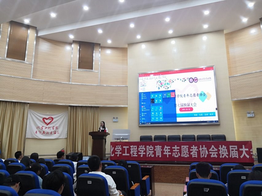 青年志愿者协会第七届换届大会如期举行。会议由青协活动部部委冯光娜主持,化工院青协工作指导老师罗晓菲出席大会,青协全体工作人员共计45人参加换届大会。