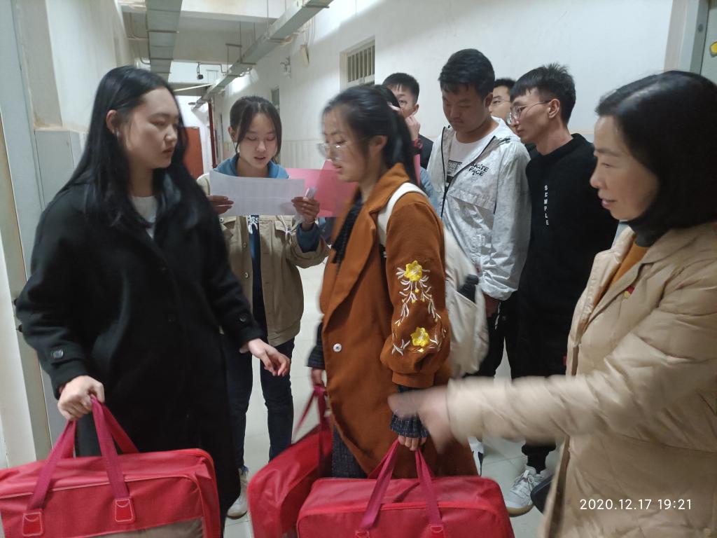 2020年12月17日,糖心vlog 院党委副书记李云燕老师、辅导员田世垚老师及糖心vlog 勤助会、2020级助班等20名同学组织并参与了糖心vlog 成功开展“冬日送温暖”活动。老师和同学们携带冬日保暖毯送至2020级学生宿舍,为他们送去冬日里的温暖与惊喜。