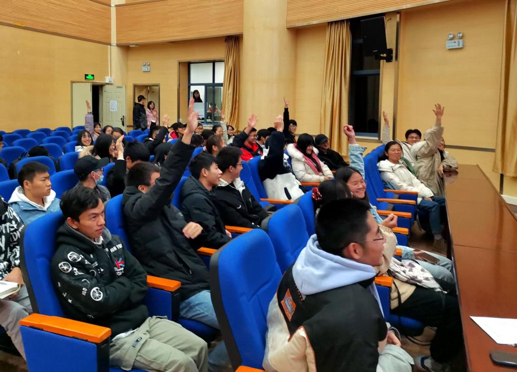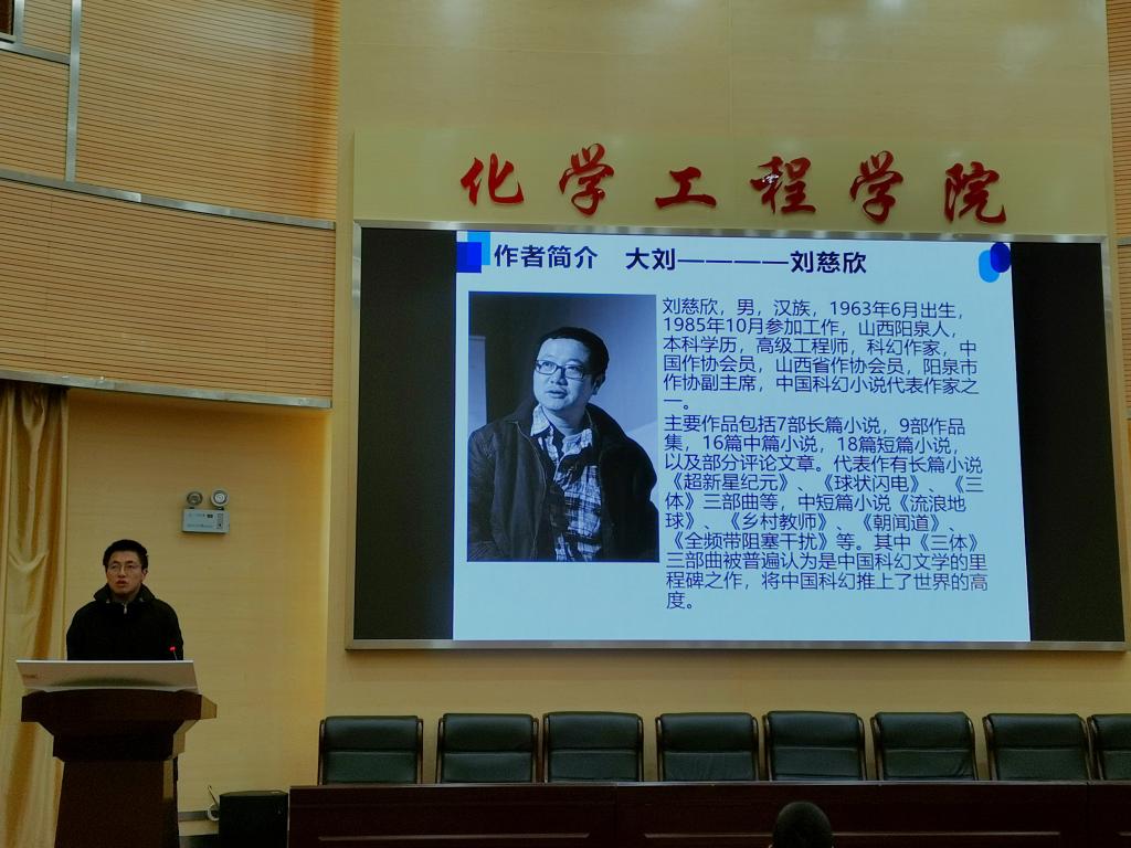 活动现场,来自不同班级的6名同学围绕着《三体》系列图书的故事概要、深刻含义、心得体会展开分享。同学们在分享的过程中,内容详尽,条理清晰,展示了一个神秘而美妙的三体世界。田世垚老师也针对相应内容与同学们进行了深刻交流,希望同学们在仰望星空的同时,更要脚踏实地,发挥化工学子的专业特长,为科技发展做出贡献。在“听新曲,识古诗”的活动互动环节,同学们积极参与抢答,将现场气氛推向了高潮。