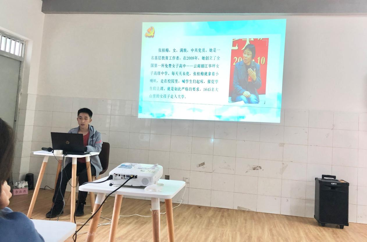 紧接着,胥良成同学带来了共产党员张桂梅和张定宇的事迹,普通的共产党员在平凡的岗位上书写着自己不平凡的事迹,激励着同学们奋发向上,为梦想、为祖国繁荣富强努力奋斗。