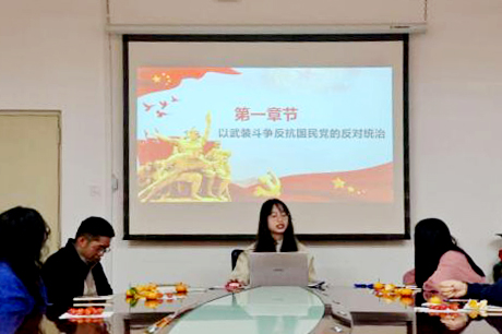 首先,田世垚老师分享阅读《毛泽东邓小平江泽民胡锦涛关于中国共产党历史论述摘编》阅读心得,让我们了解更多有关党的历史,并从中汲取经验,内化“经验”于心,外化“坚持”于行。接着高紫馨同学、许慧同学、刘思琪同学、柴欣蕊同学分别分享《中国共产党简史》第一章“中国共产党的创建和投身大革命的洪流”,第二章“掀起土地革命的风暴 ”,第三章“全民族抗日战争的中流砥柱 ”和第五章“中华人民共和国的成立和社会主义制度的建立”。读懂党史,才能深刻理解历史和人民为什么选择中国共产党,感悟了其中精髓,也就能锤炼过硬的素质,保持初心与使命,永葆鲜红色彩。