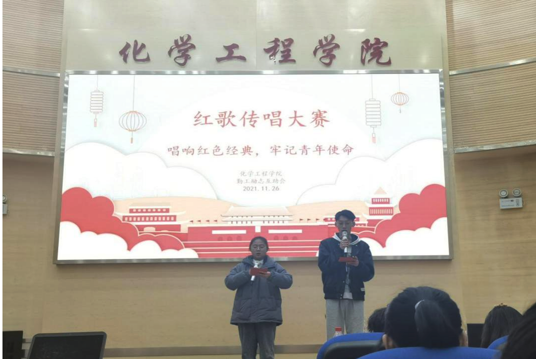 勤工励志互助会主办的“唱响红色经典,牢记青年使命”红歌传唱比赛在化工100报告厅举行,各参赛小组及观众共计200余人参加了此次活动,勤助会指导老师田世垚老师出席了本次活动,活动由叶灵汇、庞谚泽主持。