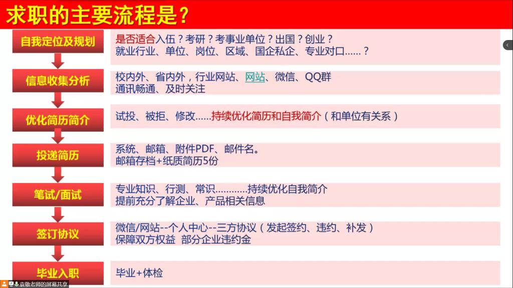 最后,袁老师希望同学们认清当前严峻的就业形势,掌握适合自己的求职技巧,尽早为求职或升学做准备,早准备,早行动,为今后的就业、创业、择业打下良好的基础。