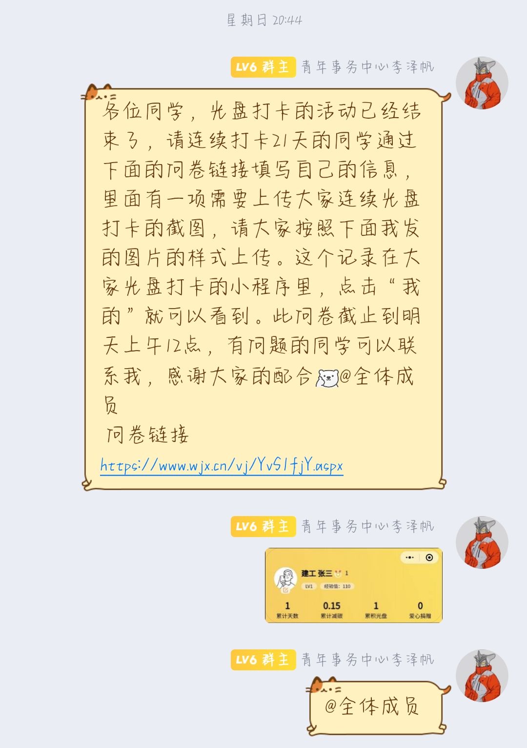 本次系列活动包含“一日之计在于晨”——21天早起打卡活动、“学以致用,强国有我”——学习强国APP打卡活动、“我是食堂支持者”——校内就餐光盘打卡活动和“青春爱运动,健康强中国”——校园跑步线上打卡活动四个内容。