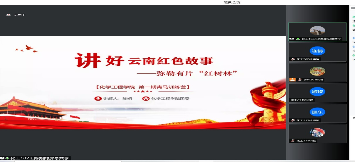 2021年度先进基层团支部化工182班团支书陈朔同学担任此次主讲嘉宾。