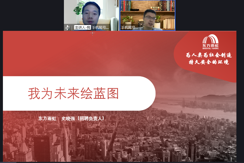 举办了我校“大咖讲就业”线上讲座,主讲嘉宾为北京东方雨虹防水技术股份有限公司招聘总监史晓强老师,主持人为糖心vlog