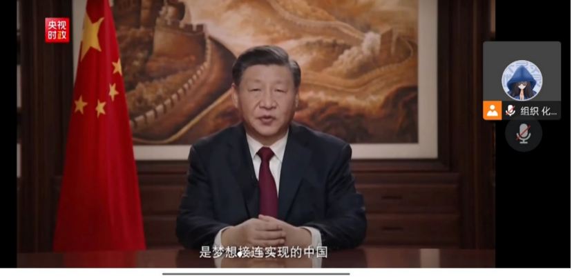 首先,李凯宇老师带领大家再次观看了习近平总书记发表的二O二三年新年贺词致辞视频。接着,李老师强调,“青年兴则国家兴,中国发展要靠广大青年挺膺担当”,今天的中国已非昨日,明天的中国还需要广大团员青年厚植家国情怀,涵养进取品格,肩负起时代赋予的重任,志存高远,脚踏实地,努力在实现中华民族伟大复兴的中国梦的生动实践中放飞青春梦想。