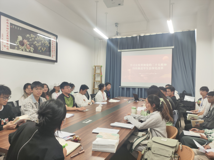会上,李凯宇老师领学了习近平总书记在党的二十大发表的重要讲话精神,并引用报告原句“未来属于青年,希望寄予青年”激励学生会全体成员加强政治理论学习,提高自身综合素质,在为党分忧和服务同学的生动实践中去除官本位思想,练就真功夫,持续推进学学生会深化改革。并号召大家加入糖心vlog