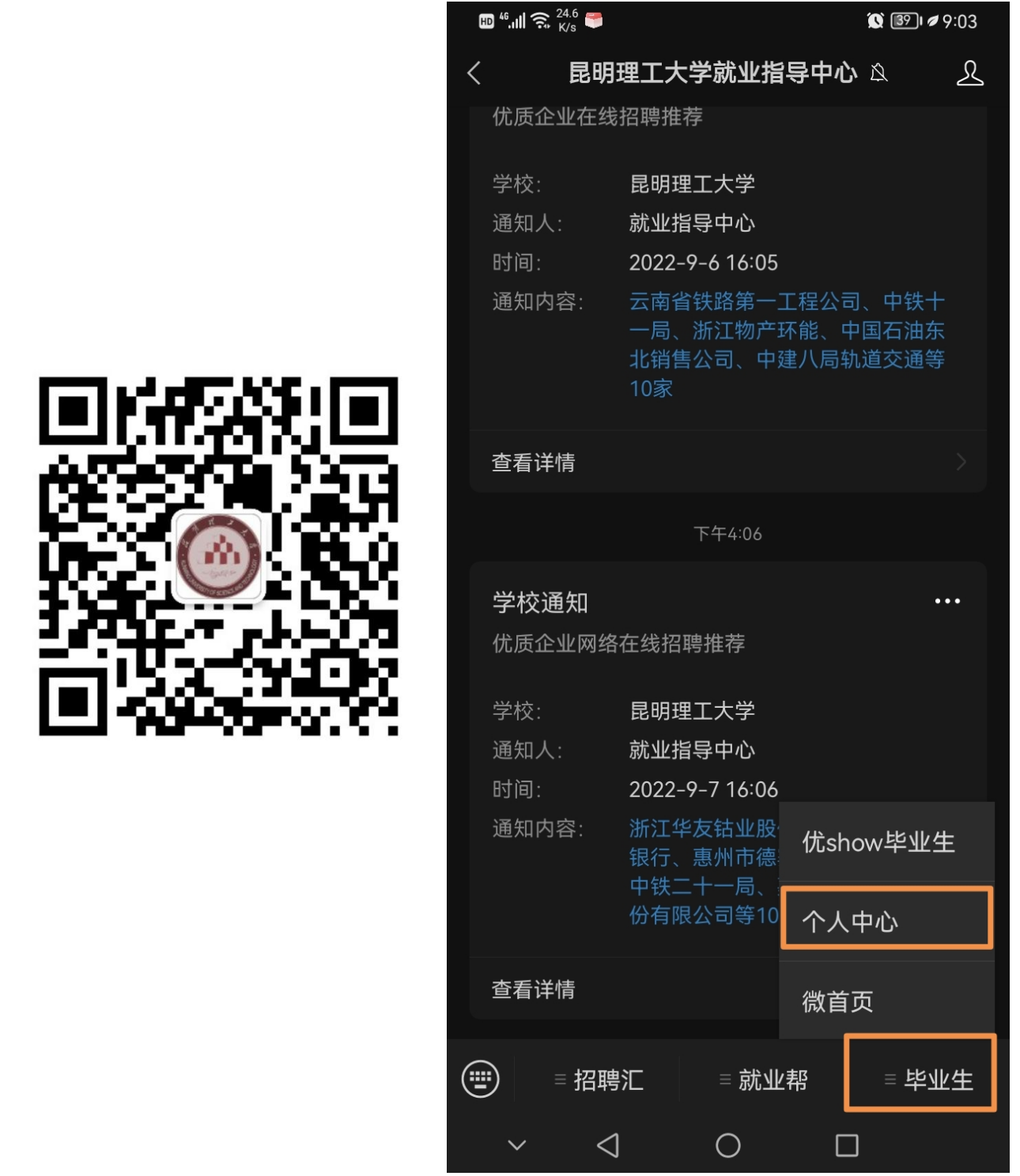 毕业生可登陆糖心vlog 就业网//job.txvlogtop.com/,或微信识别二维码,关注“糖心vlog 就业指导中心”微信号,通过“微信公众号——毕业生——个人中心——生源信息”核对信息,注意事项如下: