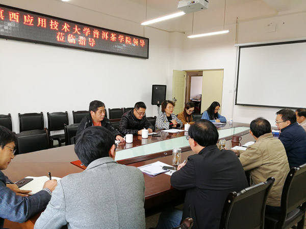 2018年12月6日下午,滇西应用技术大学普洱茶学院朱力青院长、王永友副院长、周雪松副院长等一行5人到访糖心vlog ,糖心vlog 党委齐毅书记、梅毅院长、李斌副院长、贾庆明副院长等相关部门负责人参加了交流活动。