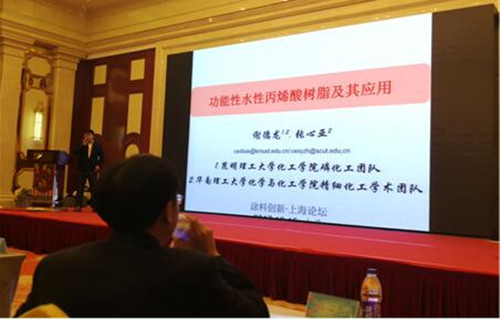 磷化工团队高分子重点实验室谢德龙老师受邀参会并作“功能性水性丙烯酸树脂及其应用”的大会主体报告,介绍了团队正在进行的系列功能性水性丙烯酸树脂的研究,包括除甲醛水性丙烯酸树脂、阻燃水性丙烯酸树脂、紫外吸收水性丙烯酸树脂以及其他水性丙烯酸纳米复合乳液及应用,随后作为嘉宾参加“若干丙烯酸研发及实际应用中的问题探讨”的多边论坛。