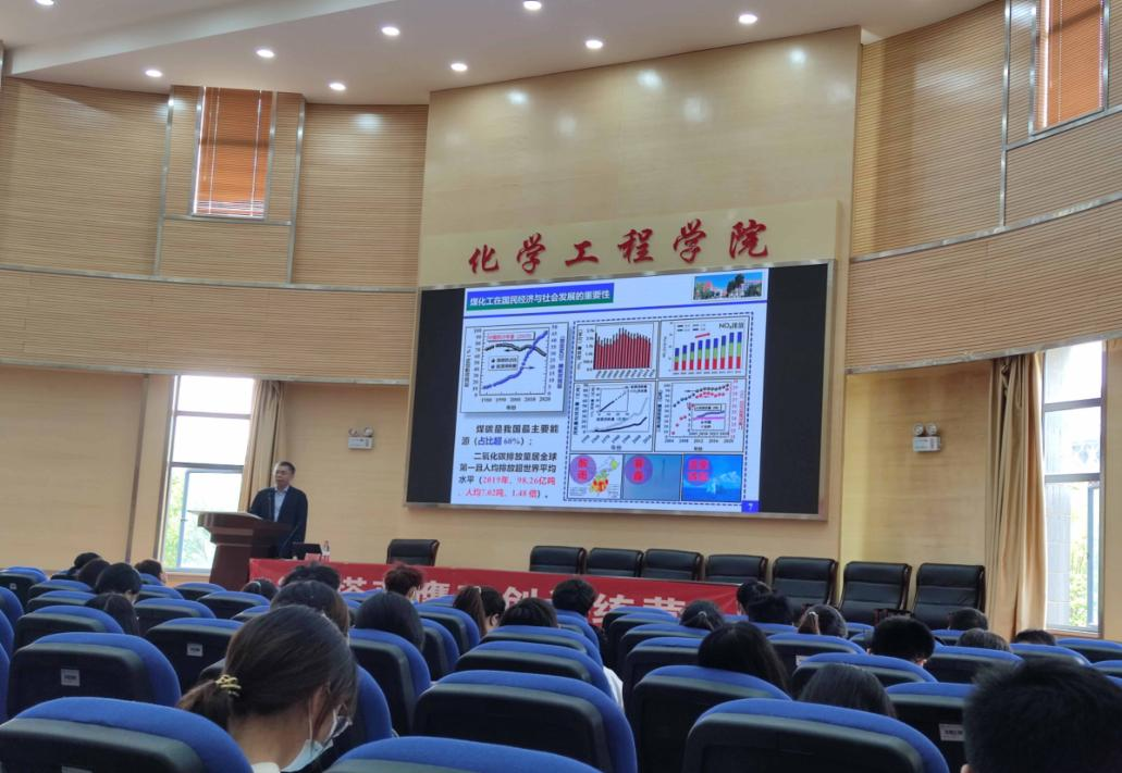 首先,罗教授向同学们简要介绍了自己的教育工作经历。接着,罗教授讲述了煤化工在国民经济与社会发展的重要性,含硫挥发性有机物污染防治的研究进展。并鼓励同学们对待科学研究遇到困难不要轻易放弃,要遵循客观规律,大胆设想,小心求证。