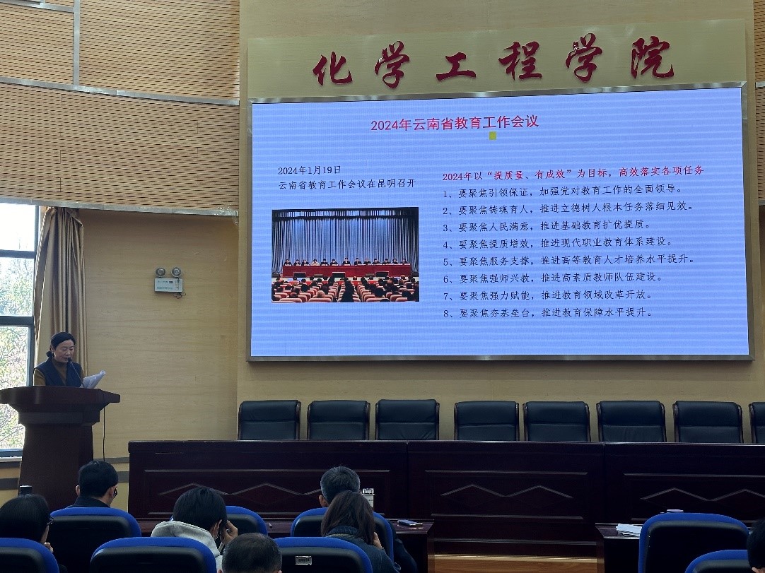 在化工楼100报告厅召开2024年春季学期全院大会,学习唐家华书记、王华校长在2024年春季开学中层干部会议上的讲话,研究部署新学期重点工作。本次会议由党委书记李云燕主持,化工学院班子成员和全体教职工参会。