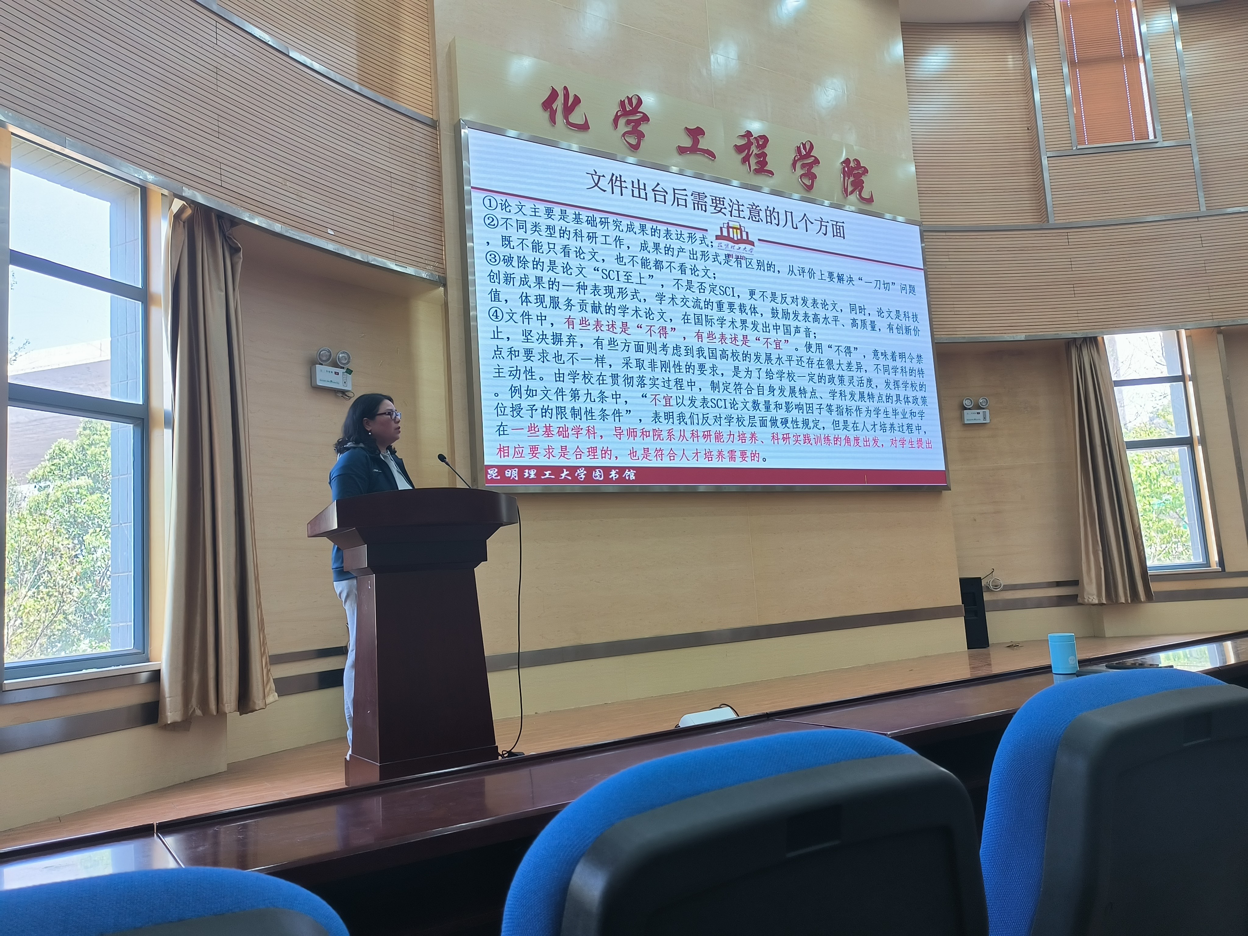 会上,杨婷老师首先向参会的老师和研究生们解读了科技部发布的规范高等学校SCI论文相关指标的政策,然后从国家、国内、我校及糖心vlog