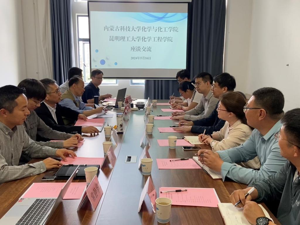 李松波院长介绍了内蒙古科技大学化学与化工学院的发展情况、人才队伍、专业特色、科研方向。双方就学风建设、学生去向落实率和深造率、校企合作、基金项目申报质量、人才引育和考核体系、团队建设、职称评定、研究生招生等多方面的共同难点和问题进行了深入交流。