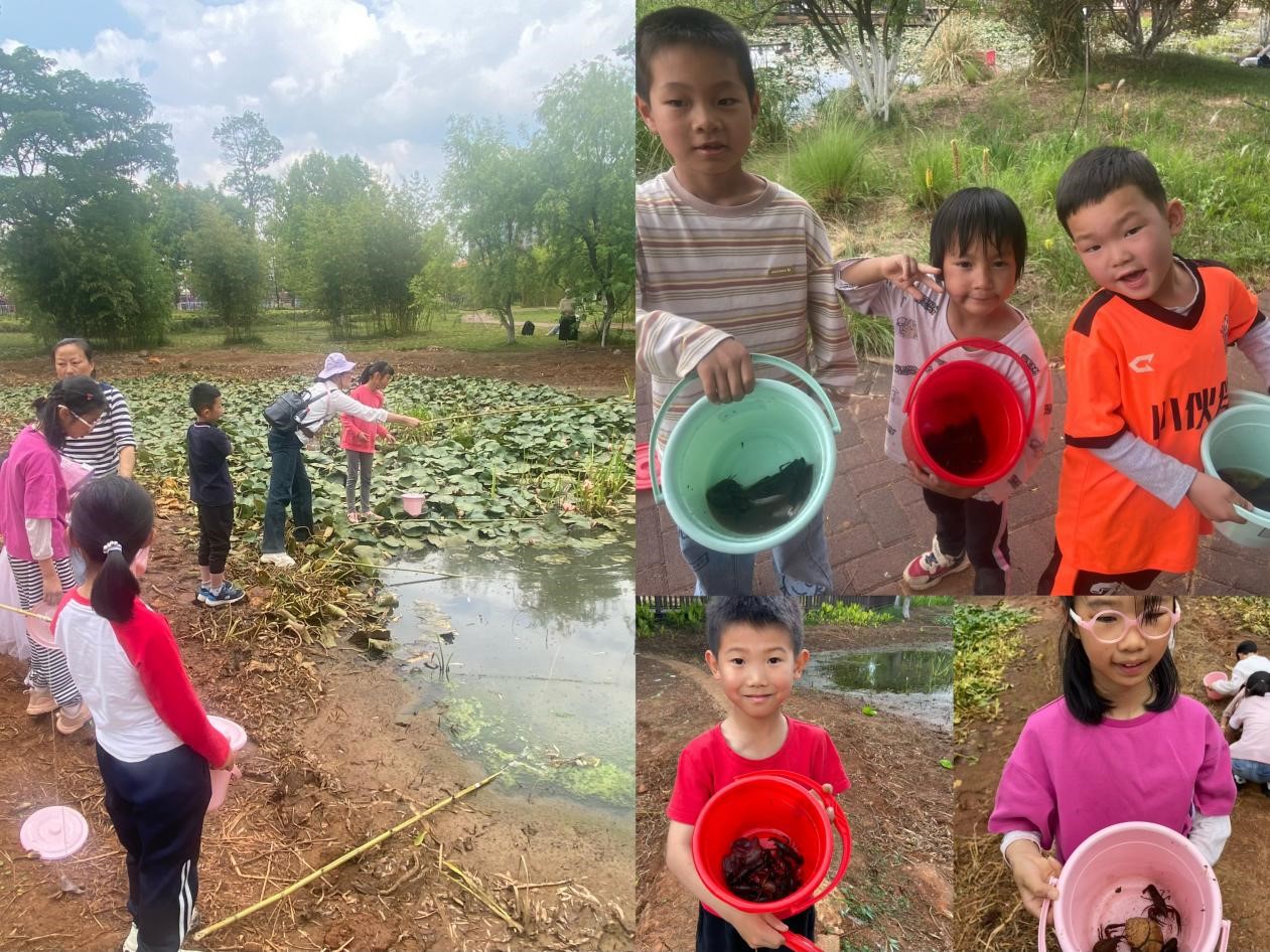 小龙虾垂钓现场嬉笑声、欢呼声不绝于耳,整个场面热闹非凡、其乐融融。大家置身湿地美景中,一边欣赏荷塘风光,一边体验垂钓小龙虾的乐趣。经历和小龙虾斗智斗勇,亲子关系更加和谐,孩子们的心灵洒满阳光,老师和孩子们脸上都洋溢着幸福灿烂的笑容。